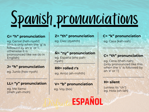 That’s why, on our learn at home courses we explain everything from scratch. We also frequently give hints and tips for pronouncing words as there are certain pronunciation rules in Spanish (see image).
